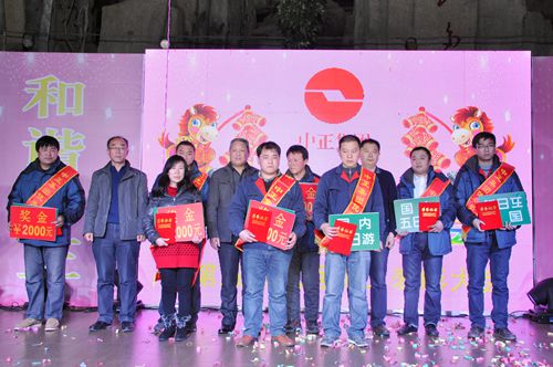 2013年12月29日下午17:00,中正集團2014年“和諧中正、幸福家庭”元旦晚會成功舉辦。集團員工及家屬歡聚一堂、其樂融融,共同欣賞精彩紛呈的晚會節(jié)目,處處洋溢著濃濃的節(jié)日氣氛。晚會上,集團公司副總經(jīng)理王曉東同志致新年賀詞,集團公司董事長李廣法同志、副總經(jīng)理葉恒剛同志、副總經(jīng)理王曉東同志為集團2013年度10名優(yōu)秀員工頒獎。